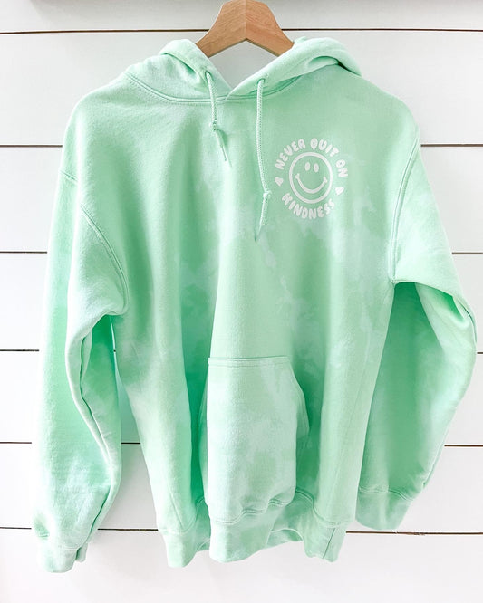 "Never Quit on Kindness" Hoodie | Green Dye Effect
