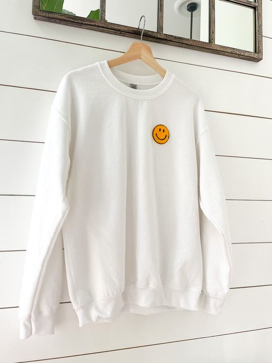 Chenille Smiley Face Patch Sweatshirt